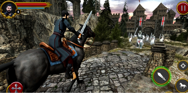 像骑马一样骑在马上,使用你的射箭技巧,远距离用箭击落敌人,在水中游泳征服堡垒。