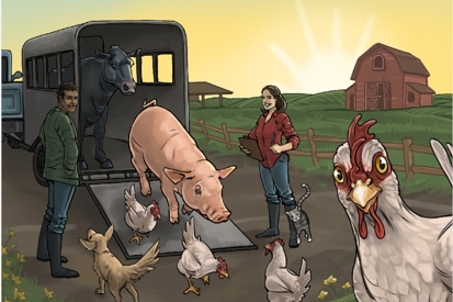 了解生活在我们身边的猫、鸡、牛、狗和猪的更多信息,并利用你的知识赢得游戏,给他们一个快乐的家!