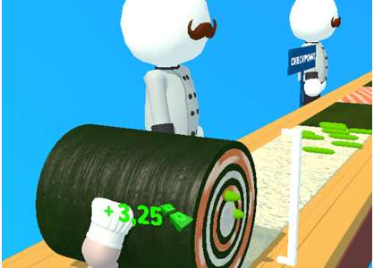 在Roll The Sushi这款游戏中,你是一名制作寿司的大师,现在有巨大的寿司需要你来制作,作为一名大师,不要犹豫,小心将原材料放置在寿司上卷起来吧,然后你就能获得游戏的胜利。