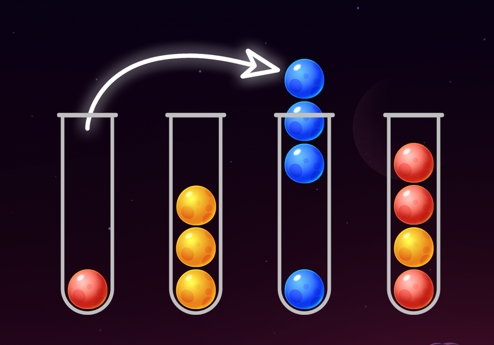 色球排序拼图这款游戏中有很多的试管,玩家在这里需要将相同颜色的小球放到同一个试管里,所有试管的小球全都是相同颜色后,玩家就能获得游戏的胜利,还有更多的解法,玩家可以一一探索。