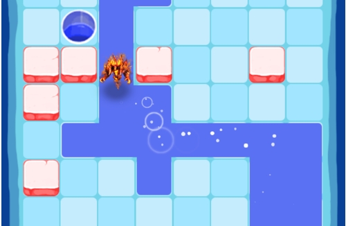 火焰精灵行走在全是冰块的迷宫中,玩家赶紧来操纵它,帮助它顺利逃离这座迷宫吧。游戏中有很多的关卡,关卡中的冰块会为火焰精灵添加寒冷值,玩家需要将火焰精灵移到合适的地方,不然就会冻死。