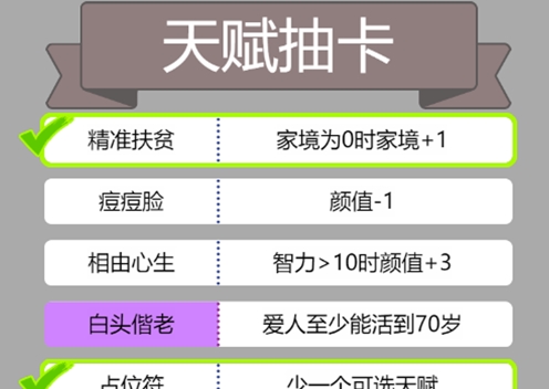 游戏会出现不同的随机事件,每个随机事件可能产生蝴蝶效应影响后面人生的走向,要谨慎选择!