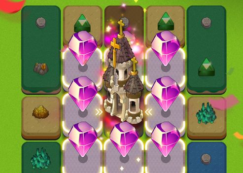 宝石城镇这款游戏中有许多亮晶晶的宝石,玩家在这里可以将这些宝石进行聚集,它们就能帮助你建立起一座高大的建筑。在游戏中,相同颜色的宝石聚合在一起才能生成建筑,合理规划宝石建成小镇吧。