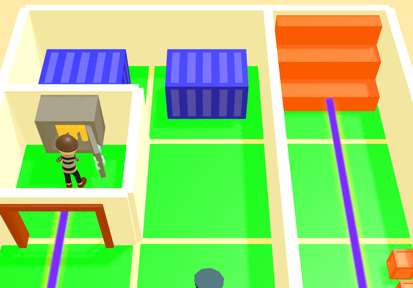 Help Bob Escape中的主角鲍勃是一个小偷,现在他顺利偷到了珍宝,他需要在不被巡逻人员发现的情况下顺利走出迷宫。在游戏中有很多的建筑物,闪避掉这些建筑物后到达终点即可获胜。