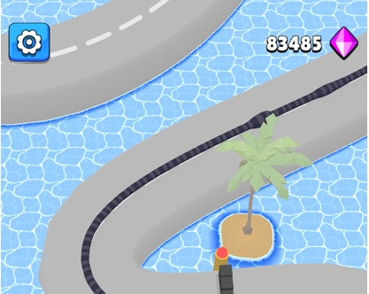游戏中的赛道很奇特,蜿蜒曲折,玩家可以自由的在赛道间穿梭,只要控制小蛇不掉下去,你就可以一直前进。游戏中还有很多的道具,利用这些道具,小蛇可以变大或变小。
