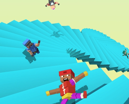 在下楼大师游戏中每一关都会有多位玩家与你一同竞技,最终谁先抵达楼梯最下方即可成功。你要操控着自己的小人快速向下翻滚,各种花式的下楼动作保证能够让你捧腹大笑。