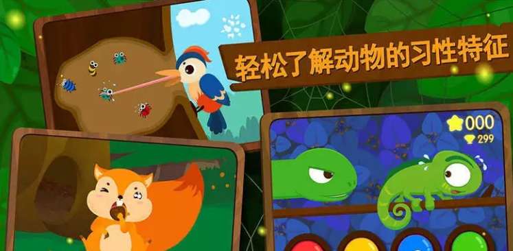 - 在宝宝巴士森林动物游戏中精选五种森林动物,学得多不如学得精;