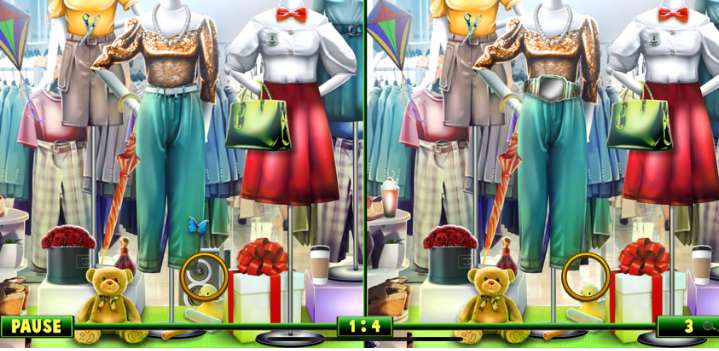 如何玩寻找差异购物中心:比较两张图片,寻找差异一旦你发现差异,点击itUse提示,如果你需要帮助,而你搜索差异使用缩放放大图片,注意所有细节放松的音乐和声音效果。