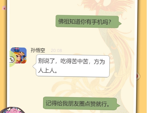 还可以在朋友圈互动,与各路神仙点赞互动,与妖怪视频通过,突破层层障碍完成西天取经之路!