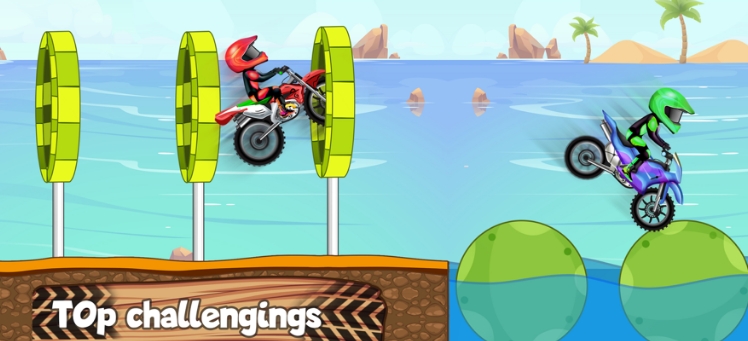 游戏中有很多的特技摩托,玩家闯关获得的积分可以兑换这些摩托,或者对摩托进行升级。玩家通关时还能解锁更多的风景,在游戏时可以一边闯关一边欣赏风景。