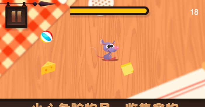神来灵活鼠中的小老鼠来到了人类的世界搜集食物,但是人类的世界处处冲完危险,玩家快来帮助它躲开各种危险物品,收集奶酪,送它回家吧。注意仔细观察,不然一不小心就会导致游戏失败。