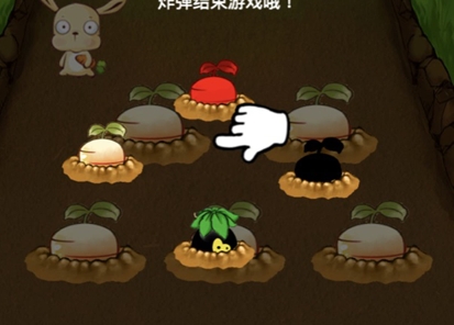 2.如果拔出炸弹,兔子会被炸晕游戏结束,拔出黑萝卜会中毒扣除分数,