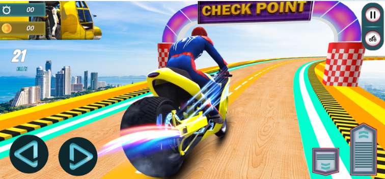 在这个自行车超级坡道游戏中,你将享受超级坡道自行车跳跃,就像肌肉自行车游戏和其他赛车游戏一样。