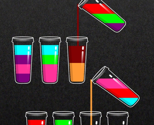 3、规则是,只有当水链接到相同的颜色并且玻璃上有足够的空间时,才可以倒水。