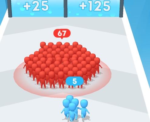 在兄弟一起冲游戏中你要带领着弟兄们一起冲到终点,并且在过程中还要通过最正确的通道来增加队伍的人数,这样才可以打败敌军。这里为你精心设计了超多关卡并且难度会逐渐上升,要记住人多力量大!