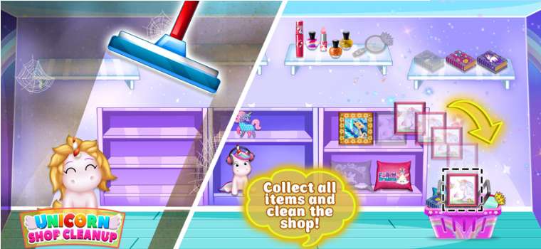 欢迎来到独角兽商店清理游戏进行家务活动,并在女孩的装饰游戏中展示您的家政技巧。
