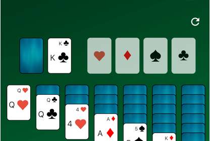 怎么玩:玩家只能移动已翻开的纸牌,并且从大到小,以红黑花色交错的方式将纸牌移动到另一已翻开的纸牌上。
