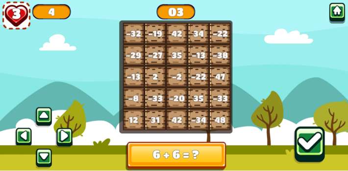 想在游戏的同时锻炼自己的思维?那就来San Math Land这款游戏看看吧。在这款屏幕上有很多的方块,玩家的任务就是找出方块中的正确答案,答对后即可进入下一关进行冒险。