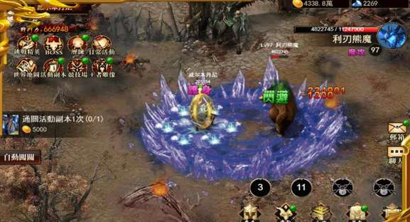 点击地面控制角色移动,点击右侧技能键释放技能,还有自动刷怪功能,