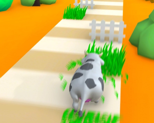 在Cow Runner 3D游戏中你要控制着一头奶牛进行闯关,在你的面前会出现许多栅栏你要灵活的躲避。并且你还要吃掉沿途更多的草,这样才可提升自己的力气,更快的跑向终点。