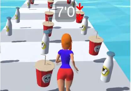 游戏中的障碍物都是固定的,但是玩家的身高是可以不固定的。玩家可以利用赛道上的饮料来改变自己的身高,这样在面对一些障碍物时,你可以轻松闯过去。
