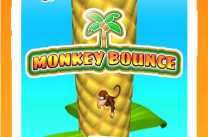 在《Monkey Bounce》中,你必须向右或向左滑动屏幕,才能落在棕榈叶之间。