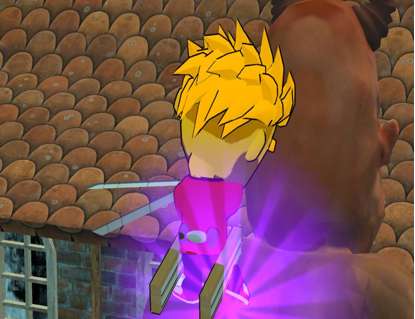 你的高科技装备使你在空中摇摆和飞向他们!用你有力的刀片瞄准脖子!砍!砍!他死了。