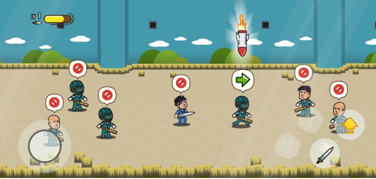 玩家在关卡中可能会面临很多的敌人,你可以收集当前关卡中的道具来击败这些敌人。当然,玩家的攻击时长也不是无限的,当游戏中出现红色标志,玩家就要停止移动和攻击。