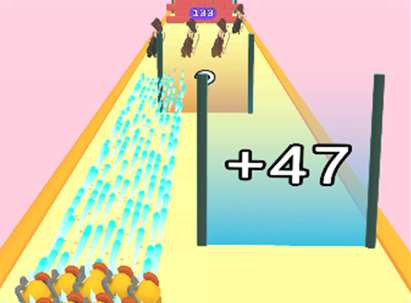 在路上有数不清的金币和武器,不要错过一个,你收集的越多,获胜的几率也就越大!在这款游戏中还有很多的道具门协助,玩家如果害怕人数不够的话,可以带领人员穿过道具门,这样就能获得成倍的战力了。
