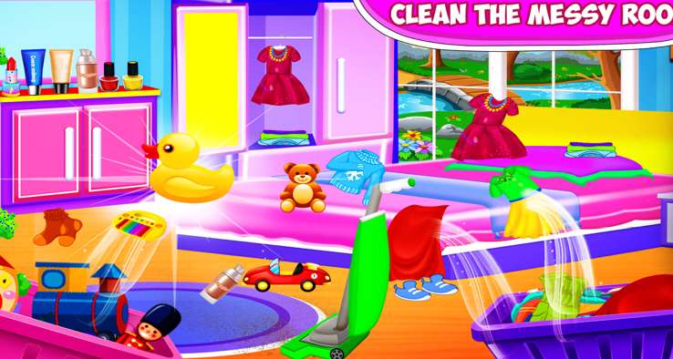 欢迎来到你可爱的女孩房子清理和凌乱的家庭清洁游戏,你必须保持你梦想中的豪宅整洁干净甜蜜的婴儿清洁游戏。