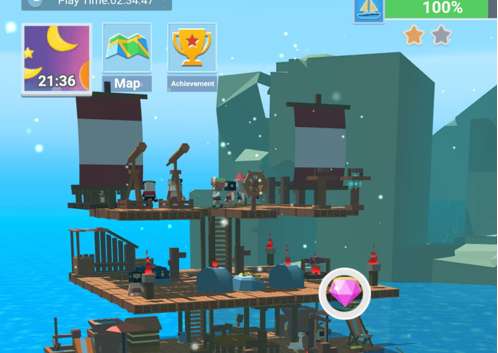 玩家要做的就是利用钩子勾住海洋上漂流的东西,利用这些物资制作有用的工具、武器,来加固自己的木筏,建筑更多木筏船,找到更多的伙伴,一起探险,环游世界。