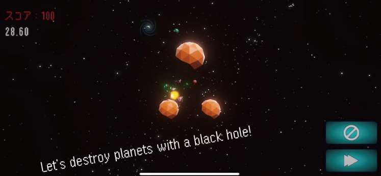 这是一个模拟游戏,通过在太空中放置黑洞并改变其轨道来摧毁行星。