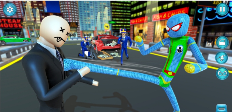 在这个了不起的火柴人绳索蜘蛛英雄中扮演超级英雄,像螺栓一样奔跑,像拍子一样战斗,像蜘蛛一样飞翔。