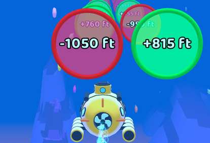 海洋深不见底,玩家需要时刻注意自己潜艇的状态。同时还有很多的小道具门,如果玩家发现自己的潜艇没有动力了,你可以点击穿过绿色的道具门,它能为你减轻压力,获得更多的动力。