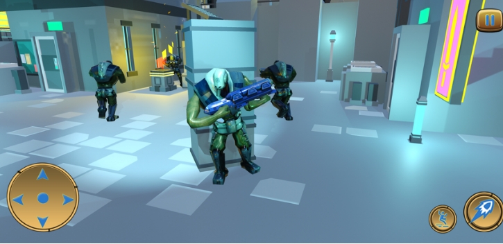 Scifi Robot War Shooting Game中有一座奇妙的城市,这里有很多的外星人,它们控制了城市的使用权。玩家想要拿回城市的使用权,就要消灭所有的外星人。在这里有很多的道具,玩家领取这些道具,还能获得更高的战力。
