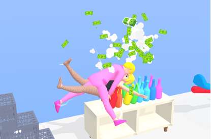 一对情侣正在一边拥抱一边向前冒险,玩家的任务就是点击屏幕,帮助他们向前翻滚,当二人顺利闪避过各种障碍物顺利到达终点后,玩家就能获得游戏的胜利。还有很多钞票可以收集,利用钞票,你可以兑换更多的积分。
