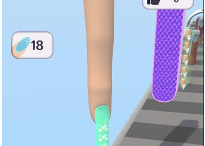 玩家在闯关时需要全神贯注的看着赛道,如果自己的指甲不小心碰到了锉刀等障碍物,那么指甲就会被锉短。同时还有很多的指甲油,你可以收集这些指甲油,让自己的指甲变得更加漂亮。