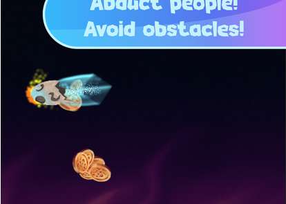 使用光束绑架人类,获得分数和硬币,但如果你想获得更高的分数,请注意避开小行星!