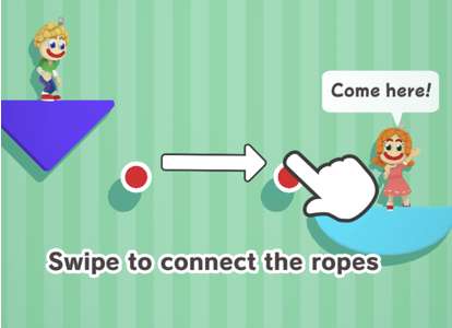 Rope Road!中的小人正在行走,他想要跑到对面去,但是前方的路被断开了,玩家的任务就是用绳子连接这些按钮,为小人搭建出一条路来,小人顺利通过到达对面后,即可完成闯关。
