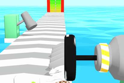 游戏中的关卡都是精心设计的,小伙伴需要小心闪避路上的障碍物,同时也要防备,如果自己掉下去的话,那么关卡就直接结束了。还有一些道具门,通过后,你的战力也能得到飞速的提升哦。