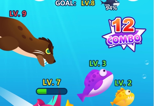 当出现密集的鱼群,你要展现高超的躲避技巧去避开危险的大鱼。