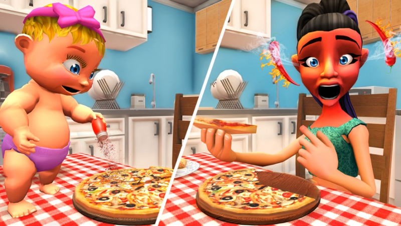 2、成为虚拟婴儿并做一些调皮的行为。 当虚拟婴儿独自在家中时。