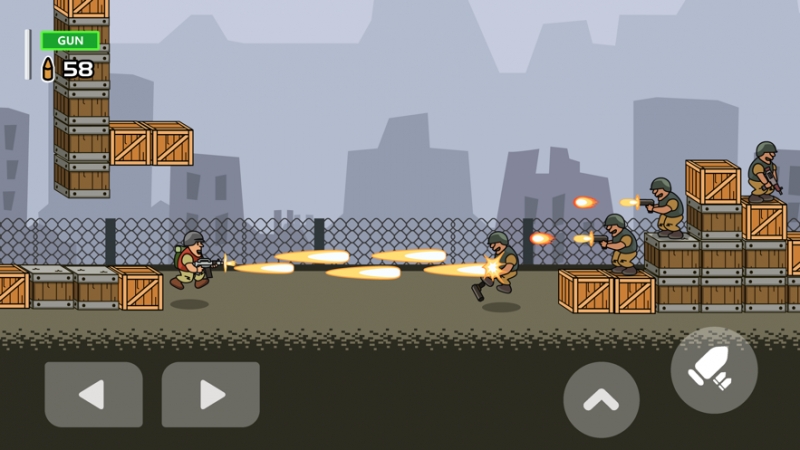 合金小兵大作战游戏为玩家呈现了横版的画面,更加方便玩家们的游戏操作。在这里你要不断打破木箱从而获得更多掉落的武器,例如手枪、沙漠之鹰、步枪等,刺激的对战已经拉开序幕!