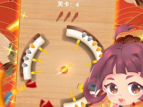 2、能够让你扔出去的飞刀成功的命中目标,每一关的模式你要成功的命中几个目标。