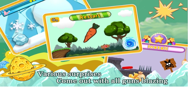 丑萌的兔子形象十分诙谐,玩家将控制这只兔子进行不断地跳跃,