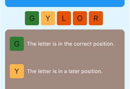 每次尝试后,字母的颜色会改变,显示进度,并给出提示:绿色:字母的位置正确。