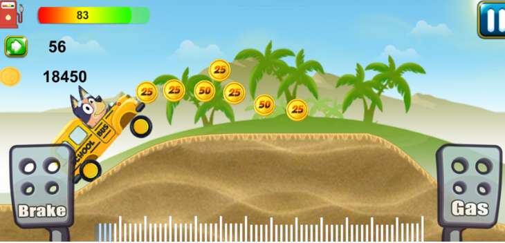 在Bluey School Bus这款游戏中有一场登山滑板比赛等待玩家解锁,如果你喜欢玩一些体育作战游戏的话,千万不要错过这款游戏哦。在游戏的路上还有很多的金币可以收集,利用这些金币,玩家可以升级自己的赛车哦。