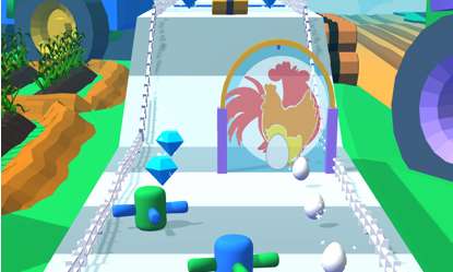 在游戏中有海量的鸡蛋需要玩家来收集,玩家收集起这些鸡蛋,自己的积分也能得到提升。还有一些钻石散落在赛道上,用户朋友们要注意,点击钻石,你还能兑换更多的道具哦。