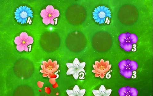 这里的花都带着数字,相同数字的花朵,让它们相加,两朵花花就能变成一朵更加高级的话,玩家同时可以获得花上的积分。如果花最后占满了格子,游戏就会结束。