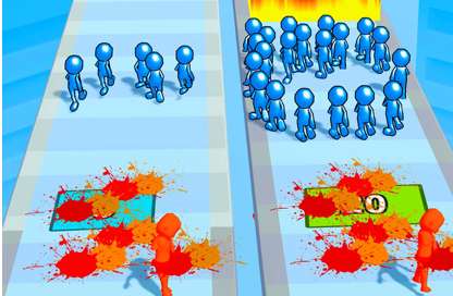 在游戏中有很多的障碍物,这些障碍物可以带走玩家队友的生命,玩家在向前冒险时需要小心闪避。还有很多的道具门,玩家需要收集这些道具门,当你顺利闪避道具门到达游戏的终点,即可获得游戏的胜利。